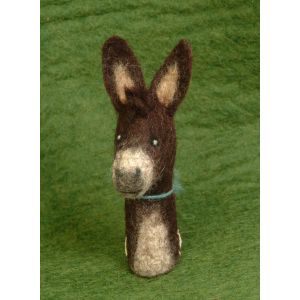 Die natürliche und hochwertige Filzfingerpuppe braunes Pferd wird aus Schafwolle nass gefilzt.